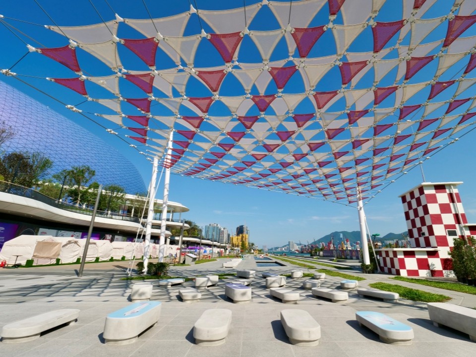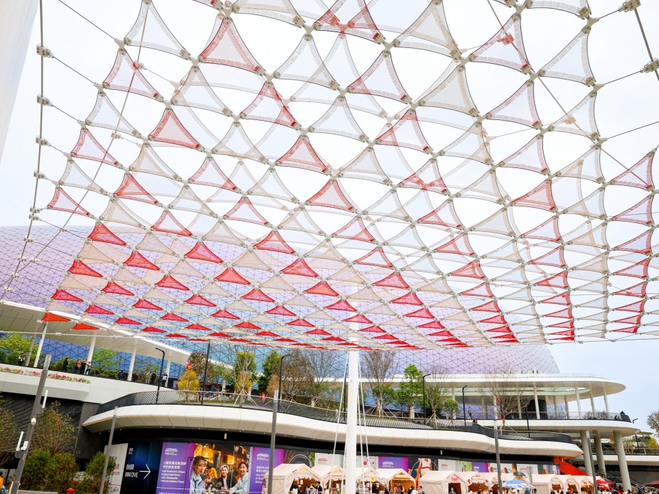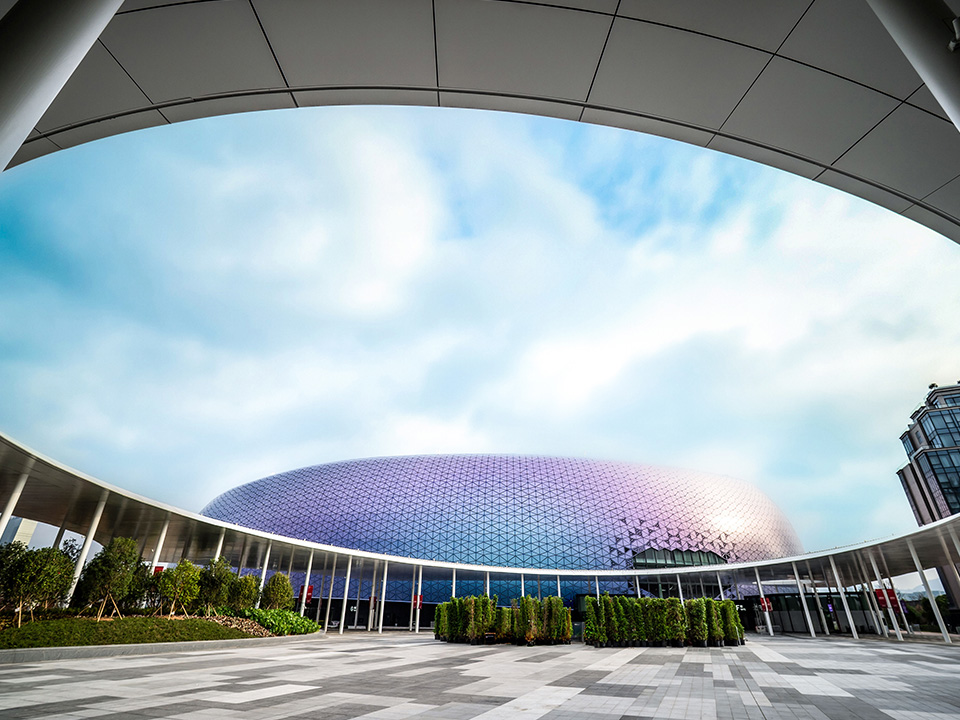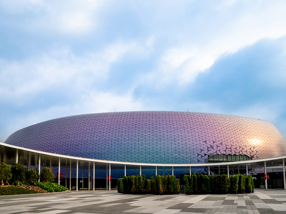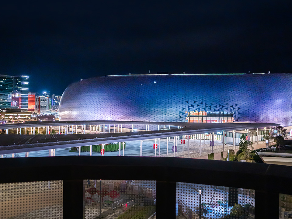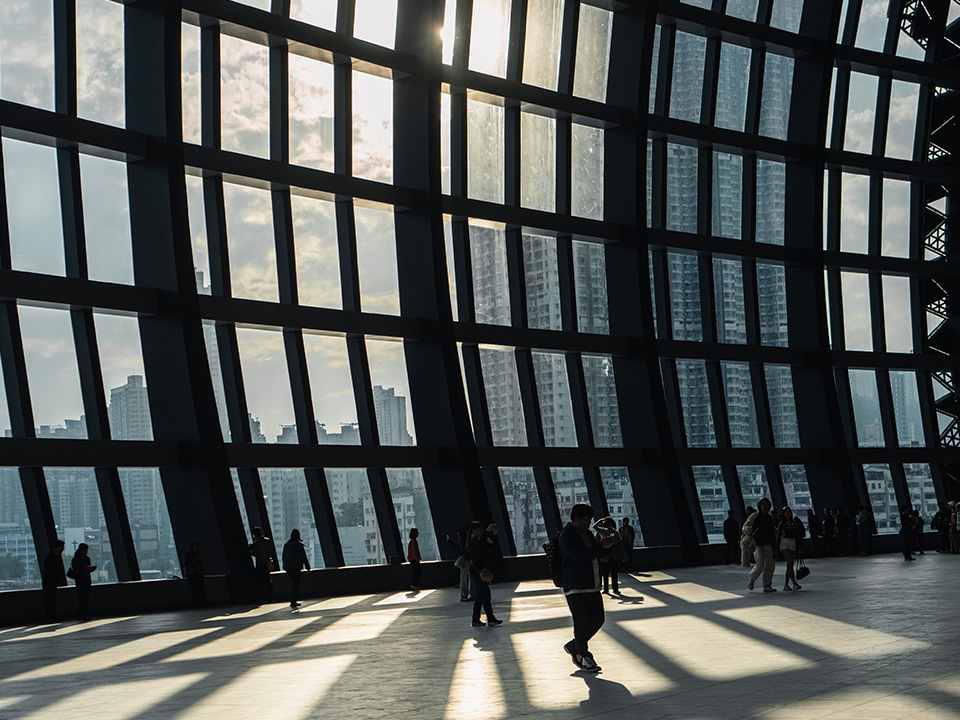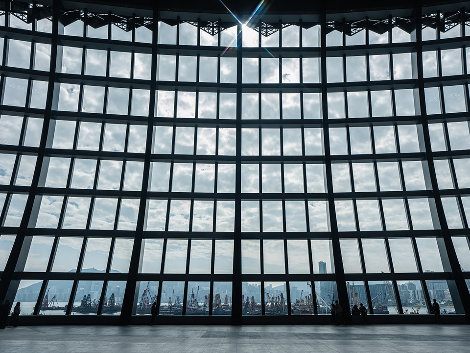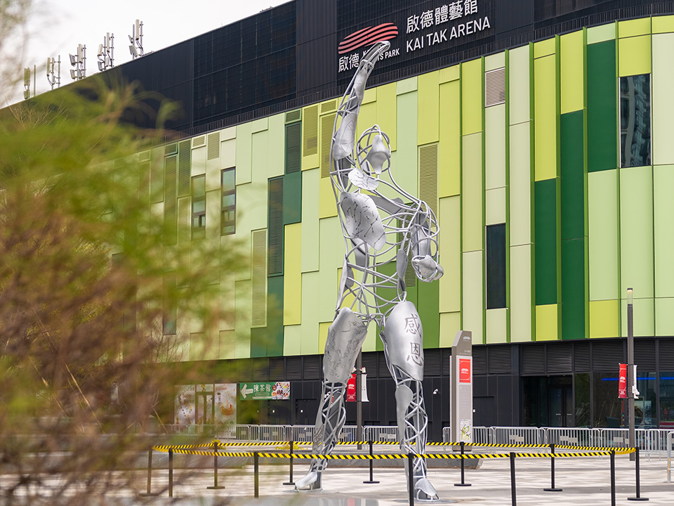 位于启德体育园的中心地带,中央广场连系着启德主场馆和体育园的其他景点。中央广场的有盖走廊呈圆弧形,从鸟瞰角度观看的话,看似一块镂空的帐幕,紧扣着不同角落;从下仰望,更可将蓝天白云的风景尽收眼底。喜欢打卡的你,不妨站在中央广场的圆廊,镜头往上拍摄,可以同时捕捉圆顶的弧线、蓝天白云与主场馆的美景。