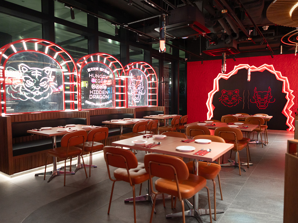 由香港跨领域设计师Keo.W打造,顶楼餐厅“饿虎藏龙”隐藏在Joypolis Sports 4楼。红黑主调的装潢布置融入现代日式风格,餐厅供应呼应运动主题的健康美食。想寻找最佳的打卡位置?站在半开放式露台,可以饱览270度无敌美景,欣赏启德主场馆和体育园区的景致,日夜氛围各有特色。