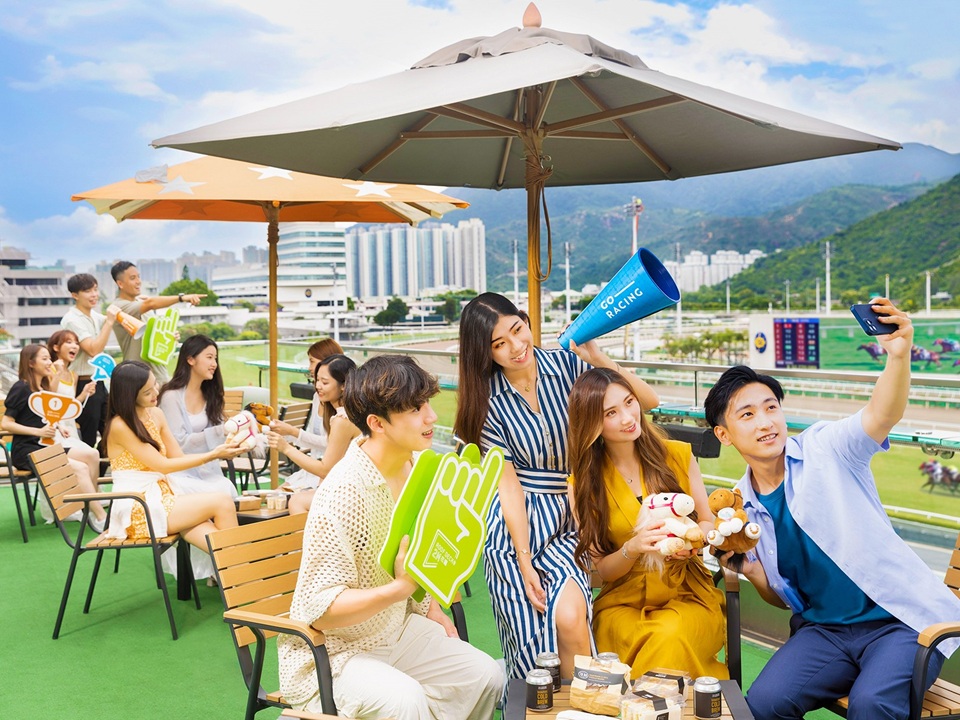 宽敞的露天场地坐拥180度赛道大直路全景,能近距离感受马匹奔驰,极受观众欢迎,尤其适合初次到场观赛的访客。场内设有太阳伞与人工草地,亦有户外餐桌或休闲木质长椅可供预订,让你一边品尝各式马场小食与啤酒饮料,一边在舒适环境下渡过港式赛马时光!