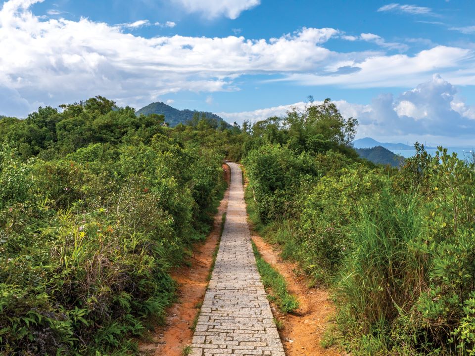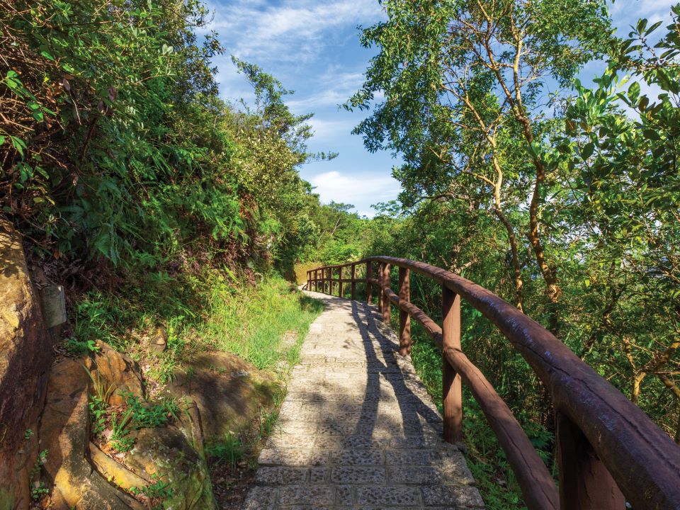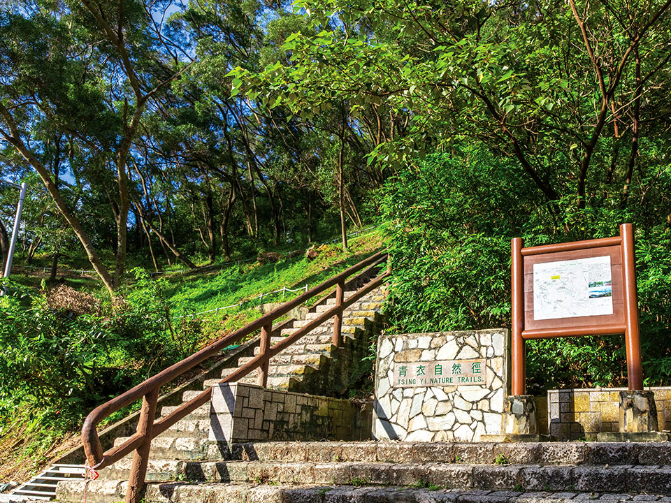 这条远足路线轻松易走,指示清晰,石级虽多,但登顶后可将青衣岛山水相伴的大桥风光尽收眼帘,绝对不虚此行。沿路设有不少休闲及运动设施,点缀路径的紫红色叶子花(又名九重葛或簕杜鹃)和紫色的小叶马缨丹,尤其值得细看。