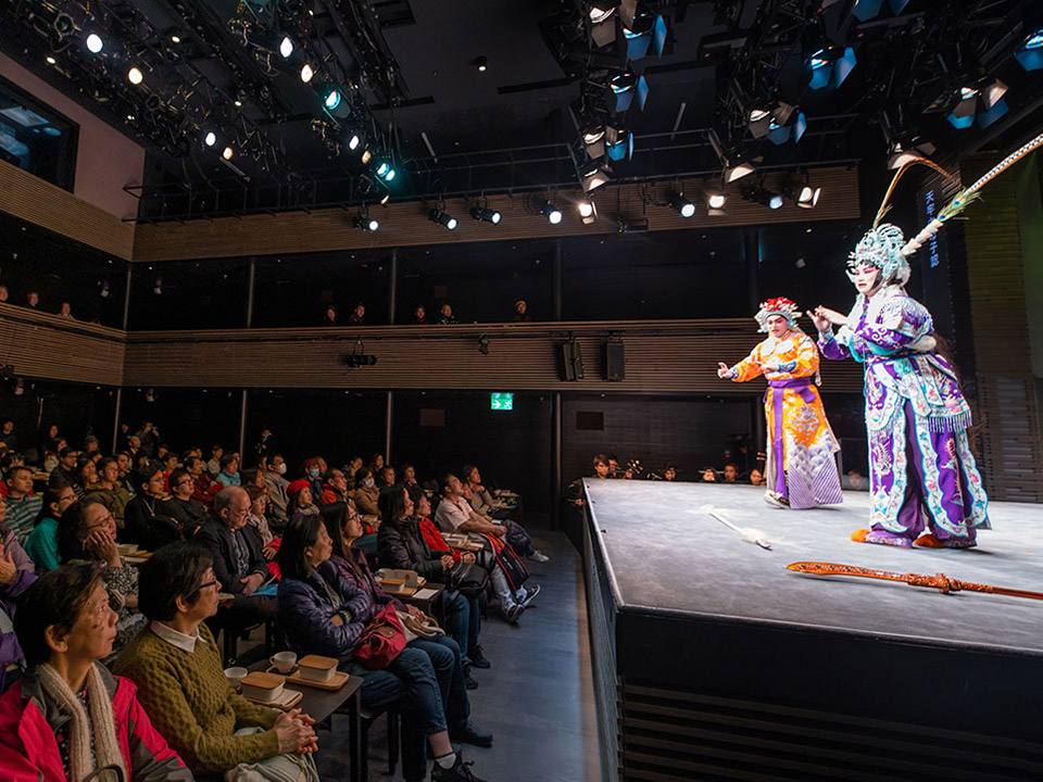 下一站戏曲中心,也是行程中的另一个不容错过的打卡位 。戏曲中心作为推广传统中国戏曲的世界级表演场地,常年提供一系列丰富节目,包括传统和当代戏曲演出、辅以解说的演出示范、讲座、导赏团及工作坊等,让不同程度、背景的人都能找到合适的节目,领略戏曲之美。茶馆剧场常设节目“粤・乐・茶韵”呈献精选粤曲、粤乐及折子戏,带领观众体验戏曲的大千世界。欣赏演出之余,还可以留心建筑物本身。在夕阳的映照下,戏曲中心光影交错,大门的设计就像舞台帷幕缓缓拉开的样子。