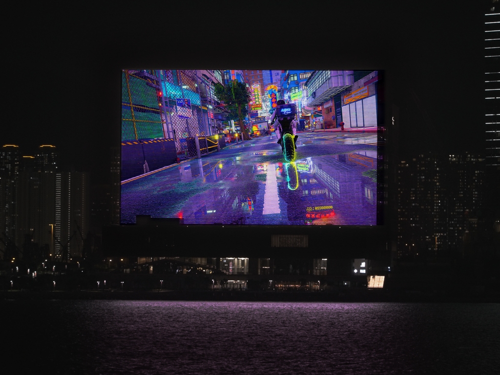 由M+和悉尼动力博物馆委约创作,展出由艺术家金雅瑛创作的全新M+幕墙委约作品《镜域舞者》(2025)。《镜域舞者》是一部推想式科幻流动作品,故事设定在有如同迷宫一样的高科技建筑物,身处其中的主角Ernst Mo,与其他不同版本的自己进行送货比赛,穿梭在灵感源自香港的建筑与霓虹灯光的街道。作品中不时出现M+和悉尼动力博物馆的藏品。此部视觉风格鲜明的动画电影,通过一场神秘的年度比赛,探讨社会对“最佳化”与“效率”的执念。