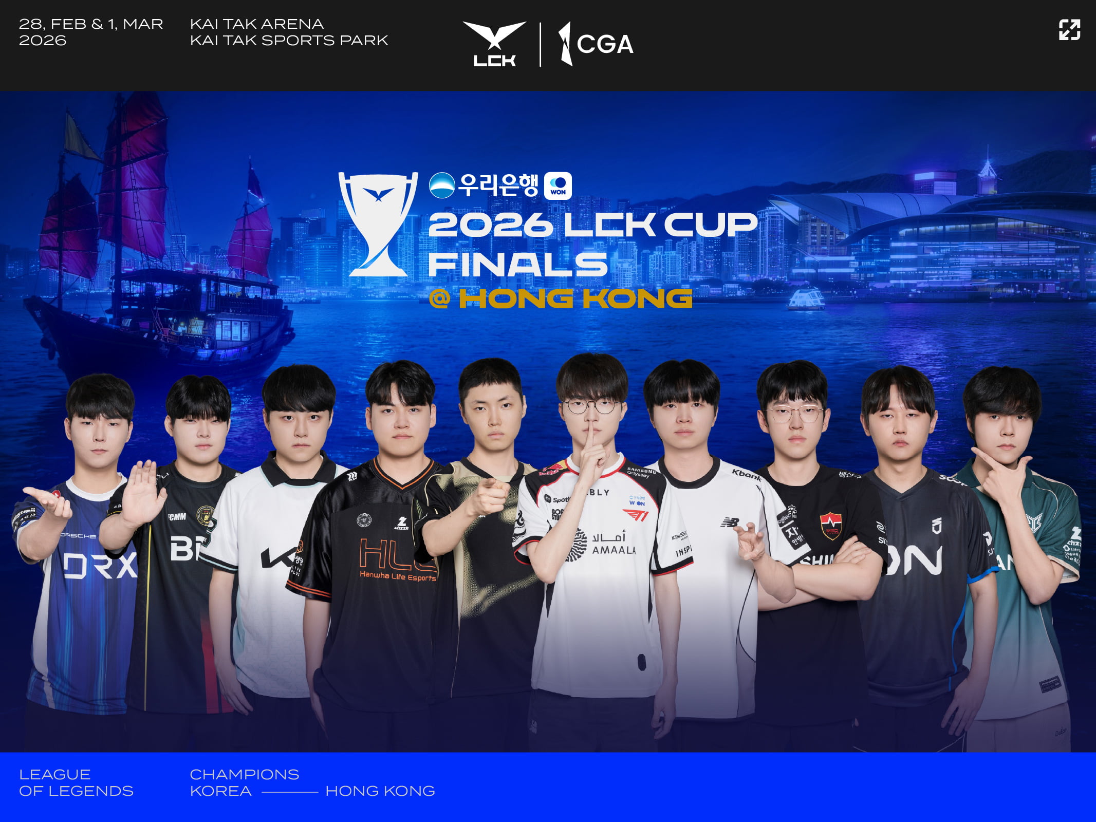 2026 LCK Cup Finals in Hong Kong决赛将首次离开韩国举行,打造首个LCK Finals的海外版。赛事一连两日举行,香港站不仅是冠军之争,更成为通往世界舞台的关键一站。