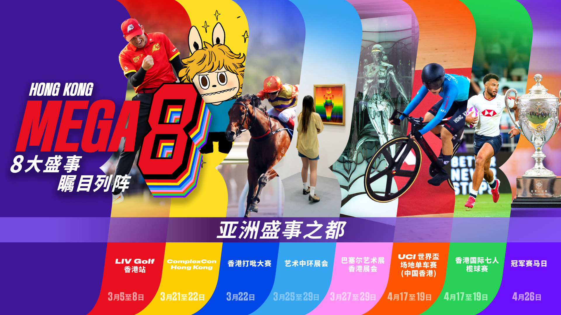 香港于3月及4月隆重呈献“Hong Kong Mega 8”,汇聚世界级运动、艺术与文化盛事,向全球展现香港“亚洲盛事之都”的非凡活力。