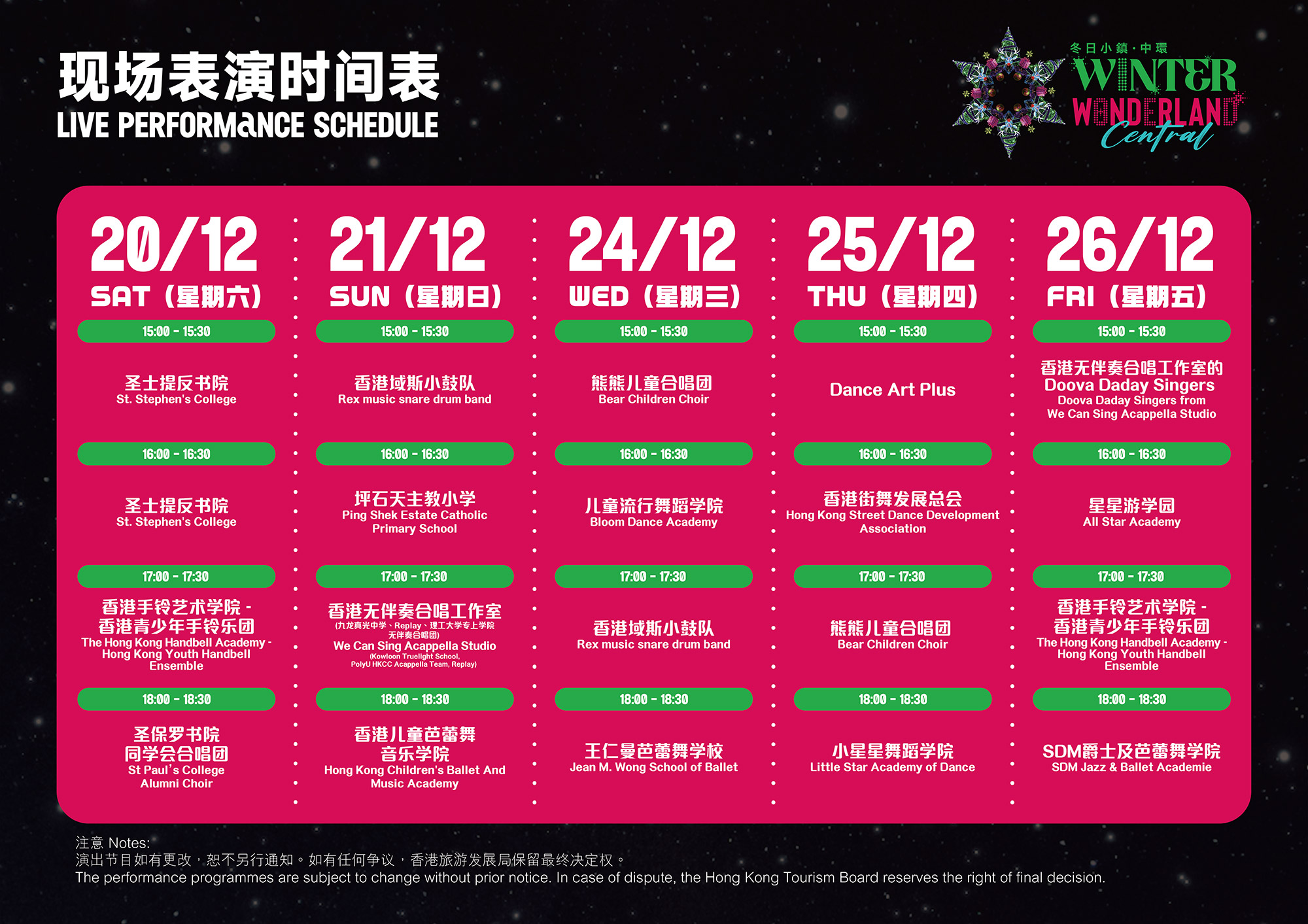*12月24、25及31日延长开放时间至翌日凌晨1:00