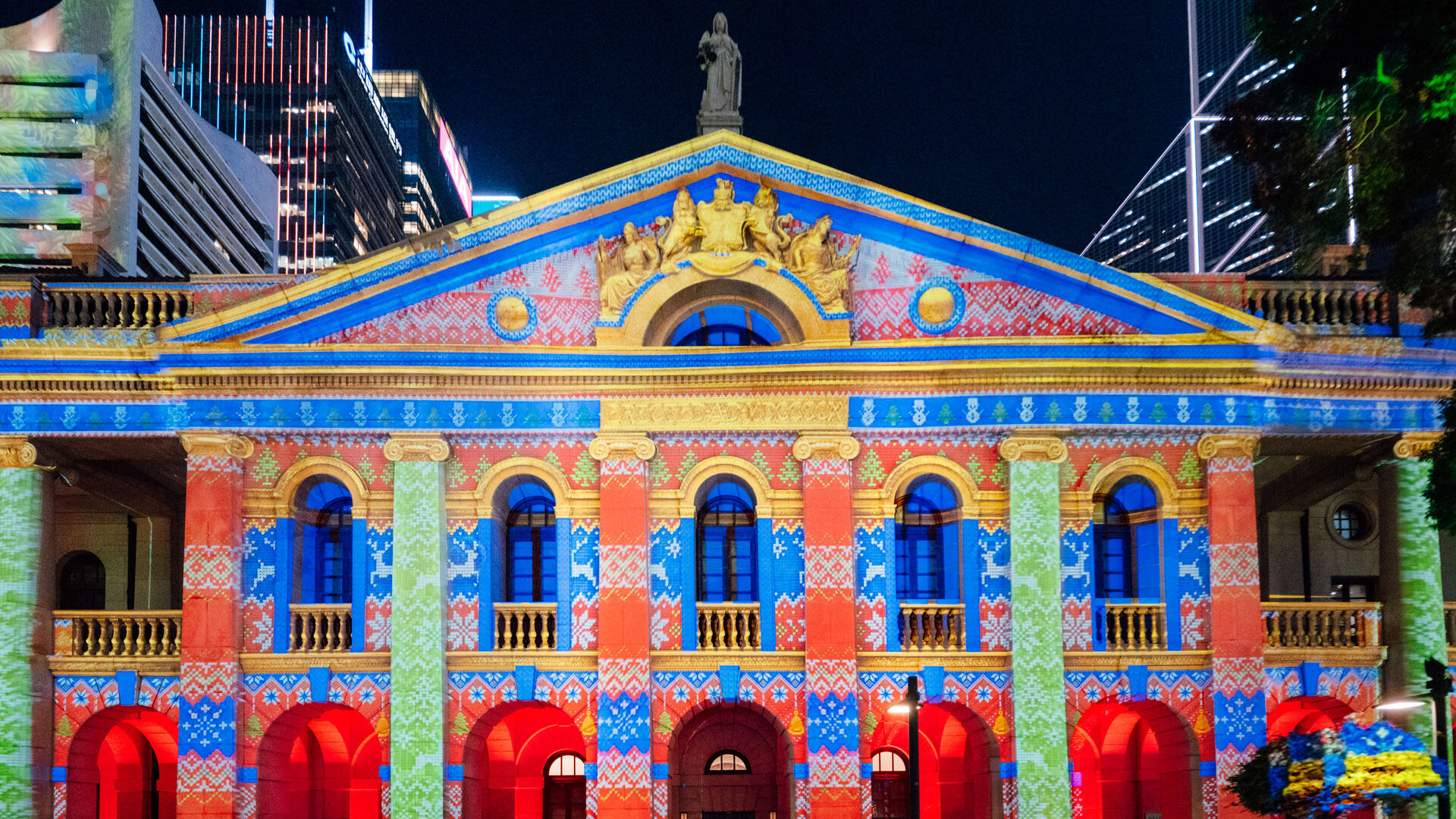 光影汇 · 中环将涵盖圣诞天地周边的八大地标建筑,透过精心设计的3D投影技术、灯光效果以配合节日音乐,将皇后像广场周边的建筑外墙,转变为一场绚丽的视觉盛宴,为你带来沉浸式的难忘体验!多彩的灯光随着音乐节奏翩翩起舞,将每一幢建筑都化作巨型光影画布,与圣诞天地的布置完美融合,让你仿佛置身于梦幻般的世界。